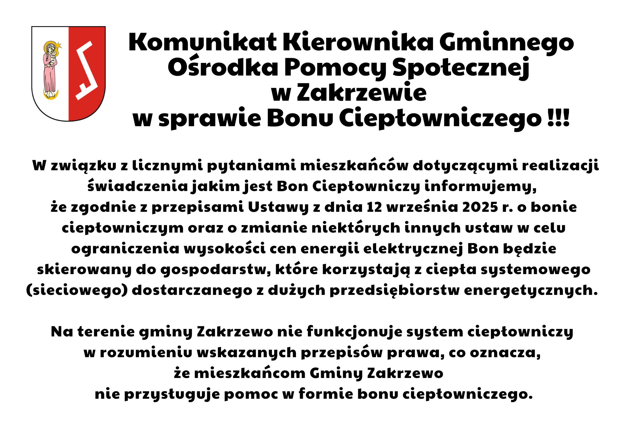 Komunikat w sprawie bonu ciepłowniczego