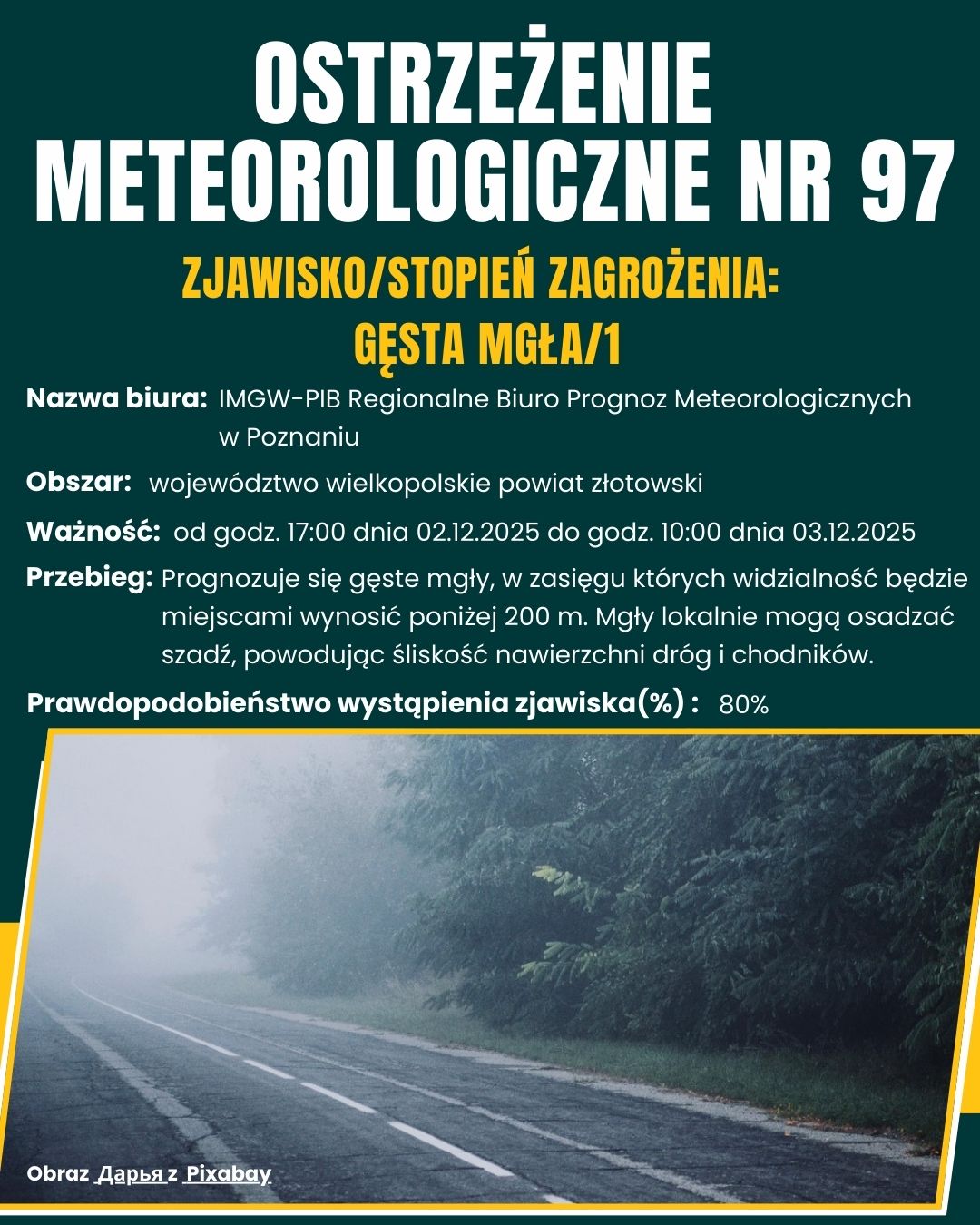 Ostrzeżenie meteorologiczne nr 97- gęsta mgła/1