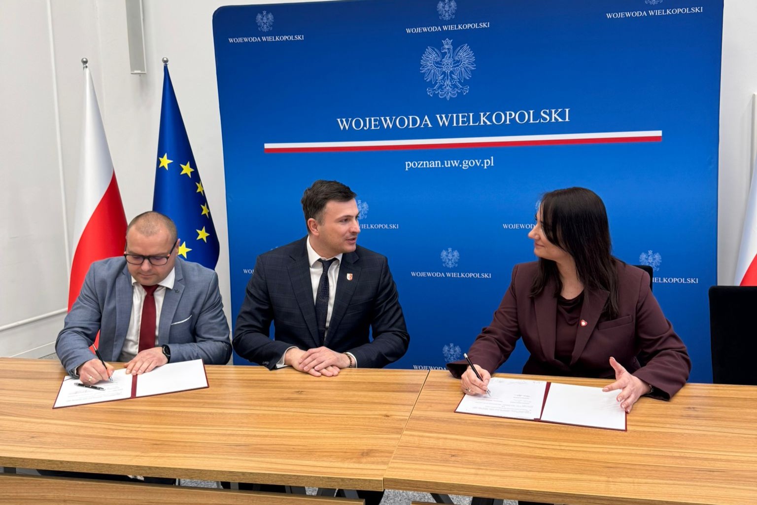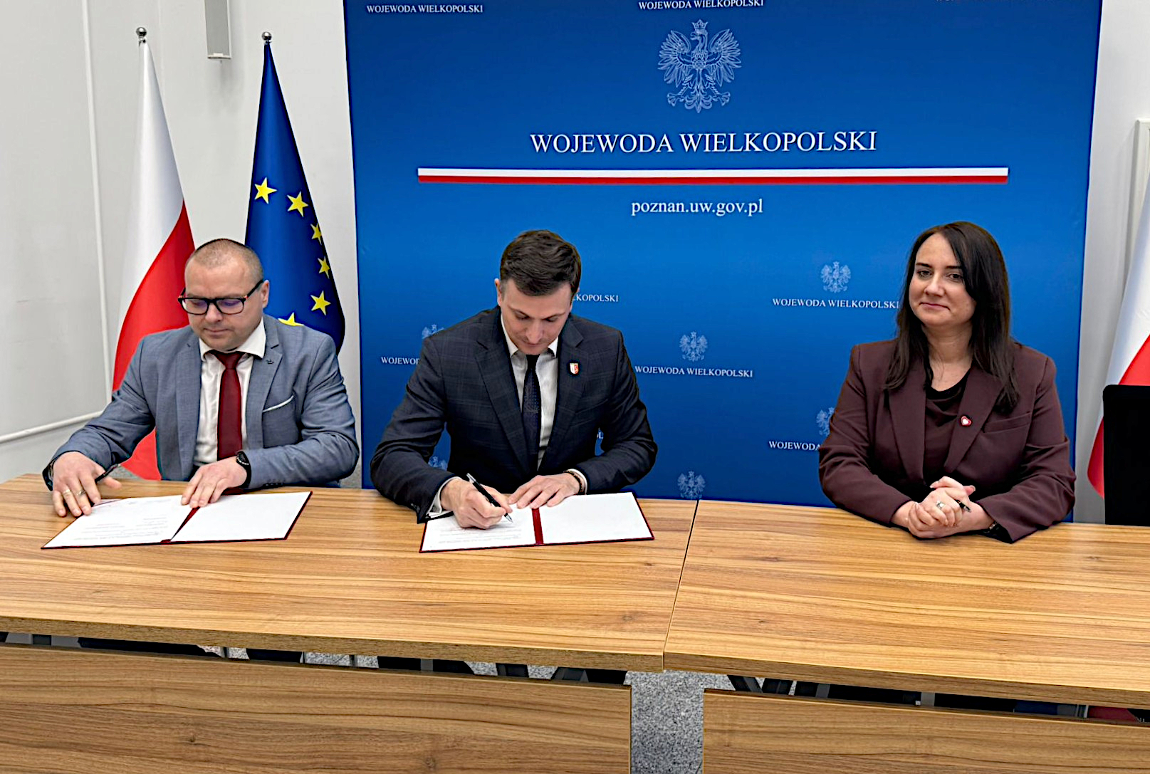 Umowę podpisali: Karolina Fabiś-Szulc - Wicewojewoda Wielkopolska, Marek Buława - Wójt Gminy Zakrzewo oraz Damian Czajka - Skarbnik Gminy Zakrzewo.