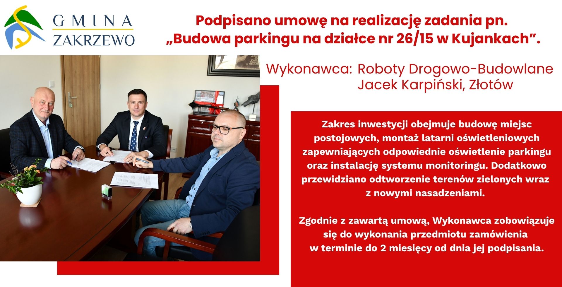27 kwi 2026 Podpisano umowę na zadanie pn.: "Modernzacja budynku PSP w Zakrzewie"