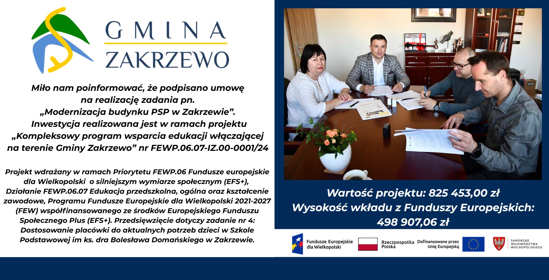 Podpisano umowę na zadanie pn.: "Modernzacja budynku PSP w Zakrzewie"