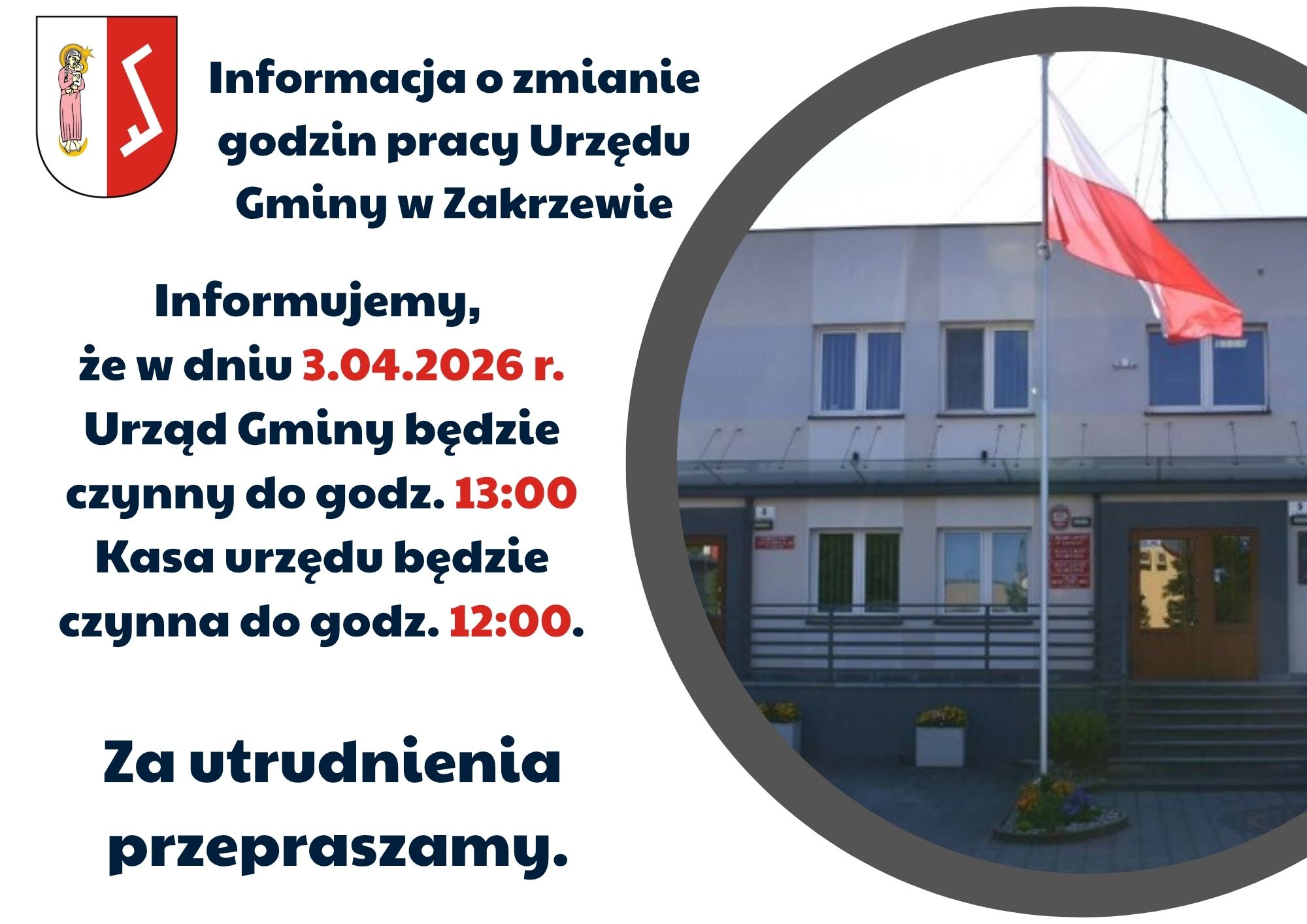 Uwaga! Zmiana godzin pracy Urzędu Gminy!